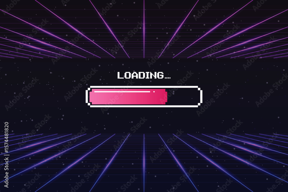 Wall mural : Loading bar - pixel art - 8 bit - retro game - for game assets in vector illustrations - retro futurism s