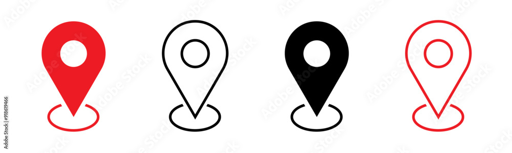 Location icon set map pointer pin sign symbol red black outline destination icon place address navigWall mural
