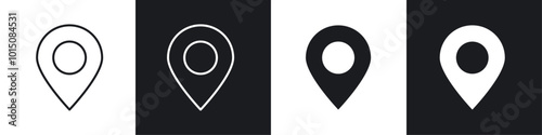 The watermark will not be included on Wall mural.: Location pin icon vector icon set black filled and outlined style -