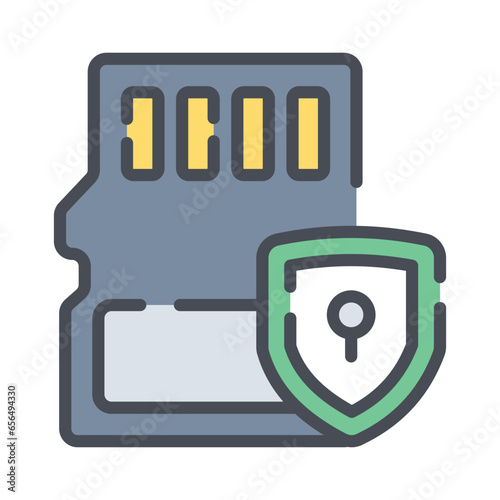 Wall mural locked memory card with shield. sd card security, data security secure information