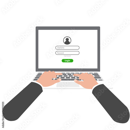 The watermark will not be included on Wall mural.: Log in account on the laptop - hands on the laptop - laptop with password notification and lock icon -