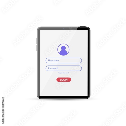 Wall mural log in screen on tablet. application interface, registration form with login and password fields. we - Wall murals Wall mural log in screen on tablet. application interface, registration form with login and password fields. we - Wall murals