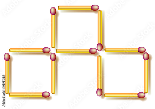 The watermark will not be included on Wall mural.: Logic puzzle - move three matchsticks to make seven squares - vector image -