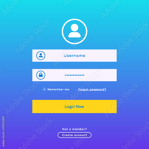 Wall mural login form page template on modern gradient background for website ui elements, online registration, - Wall murals Wall mural login form page template on modern gradient background for website ui elements, online registration, - Wall murals