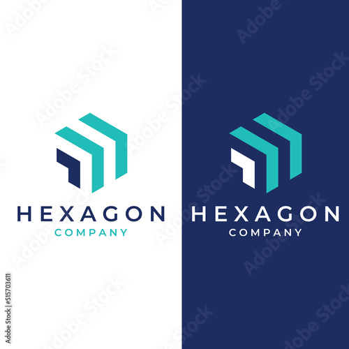 Wall mural logo box hexagon or cube and technology hexagon logo creative simple logo.by using modern template v