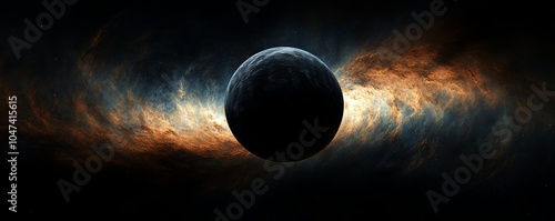Lone planet orbiting through colorful nebula clouds in deep spaceWall mural