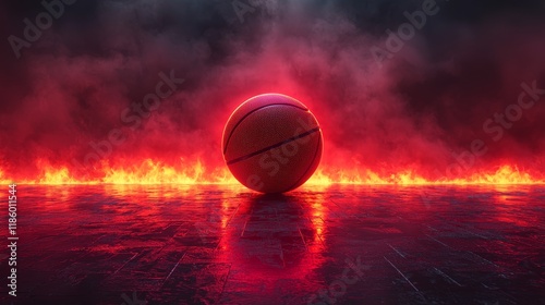 The watermark will not be included on Wall mural.: Loop animation of a basketball with a dark neon light effect rendering