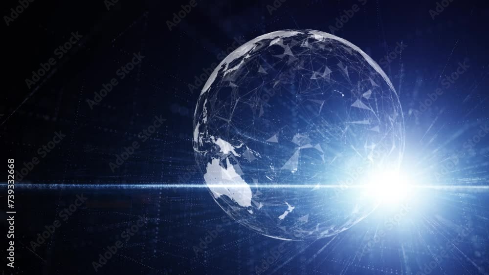 Loop digital earth globe rotation with shiny glowing light animation background - Wall mural