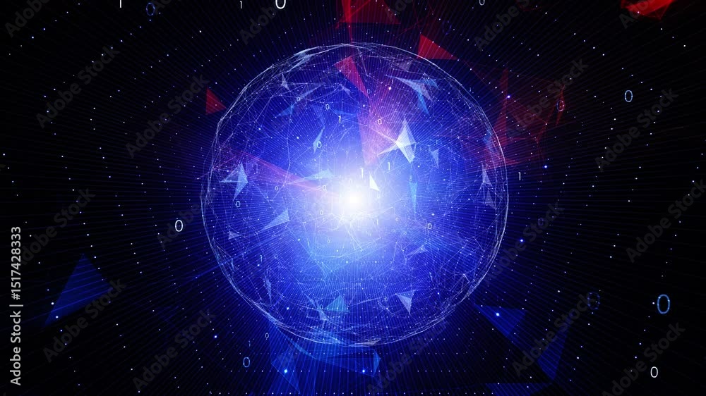 The watermark will not be included on Wall mural.: Loop digital science sphere copy space on pentagon tunnel with binary code background -
