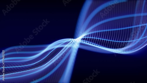 Wall mural loopable animation of glowing blue waves made of particles and neon lines. looped abstract backgroun