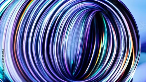 Wall mural : Looped 3d animation of energy dynamic abstract footage with glowing plasma swirling lines, waves, sh