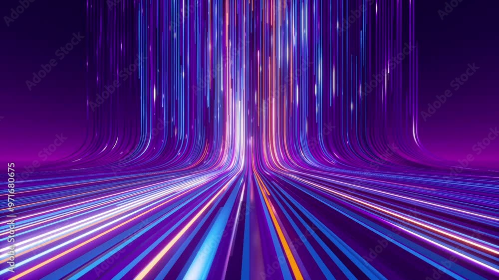 Wall mural looped 3d animation. abstract animated background of multicolored stripes and ribbons gliding down,