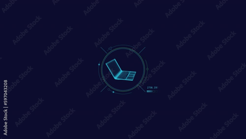 The watermark will not be included on Wall mural.: Looped animation of a laptop in a circle hud element -