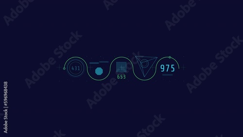 Wall mural : Looped animation of a wavy line with geometric shapes hud element -