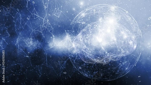 Wall mural looped bright glow digital sphere with brain animation. concept futuristic science background.