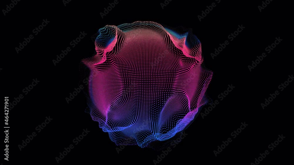 Wall mural looped distortion waves on abstract sphere of particles. digital data splash of spherical point arra