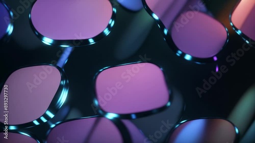 Wall mural : Looped seamless pattern animation of energy dynamic abstract footage with glowing 3d grid waves, geo