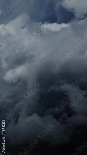 Wall mural lot of lightning during a thunderstorm. storm clouds are moving fast on the viewer, timelapse. verti