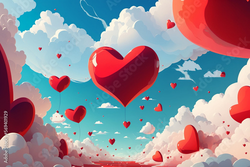 The watermark will not be included on Wall mural.: Lovable hearts floating in the sky created by generative ai