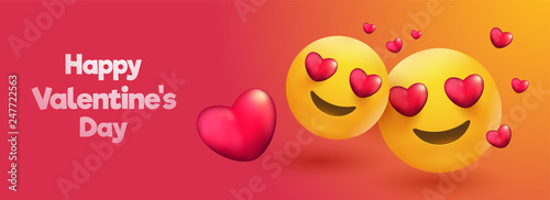 Wall mural : Love emoji on glossy background with heart shapes for valentine's day header or banner design -
