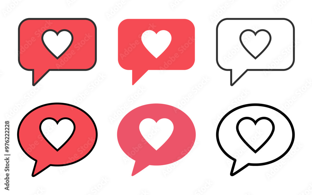 Wall mural love message icon set vector buttons sign symbol network reaction like good emotions heart shape str - Wall murals Wall mural love message icon set vector buttons sign symbol network reaction like good emotions heart shape str - Wall murals