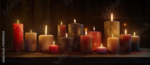 Wall mural lovely candles flickering against a dark backdrop. with copy space image. place for adding text or d