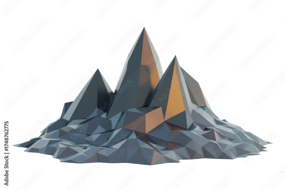 Wall mural low-poly 3d render of a mountain range with metallic peaks and a textured base. background removed - Wall murals Wall mural low-poly 3d render of a mountain range with metallic peaks and a textured base. background removed - Wall murals