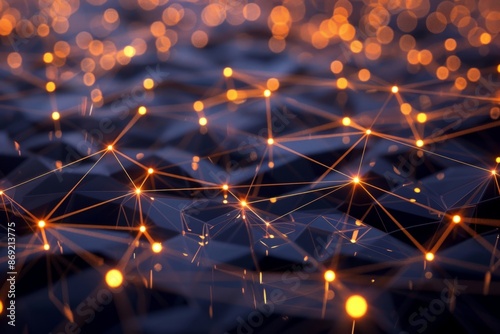 The watermark will not be included on Wall mural.: Low poly abstract polygonal space with connected dots and lines