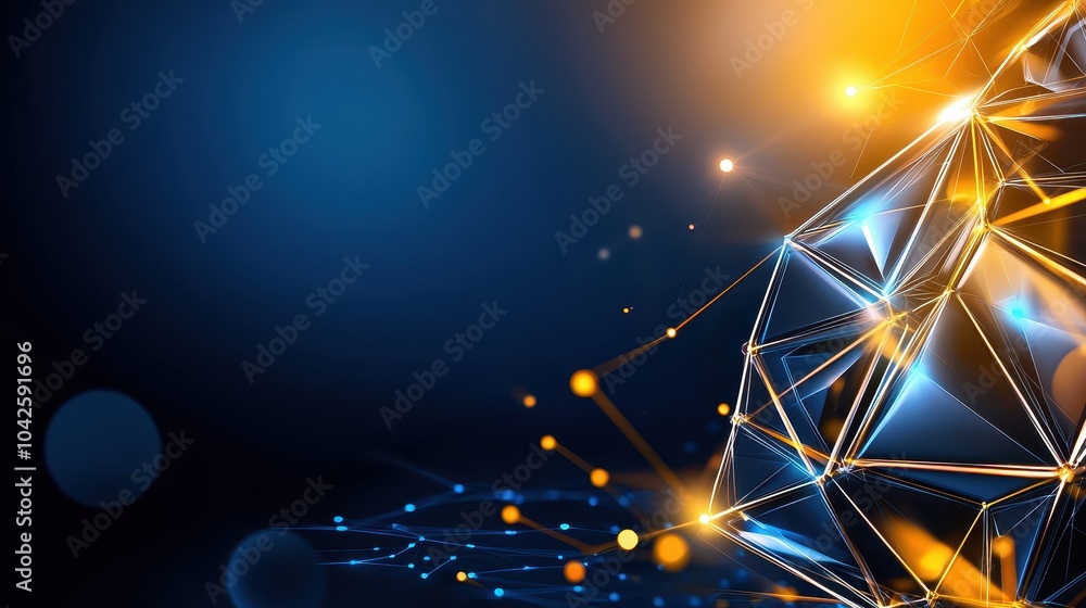The watermark will not be included on Wall mural.: Low-poly technology background with glowing edges and abstract geometric shapes scattered -