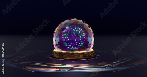 The watermark will not be included on Wall mural.: Luminescent particles within polyhedron glass globe - diffraction of light and caustics - 3d rendering
