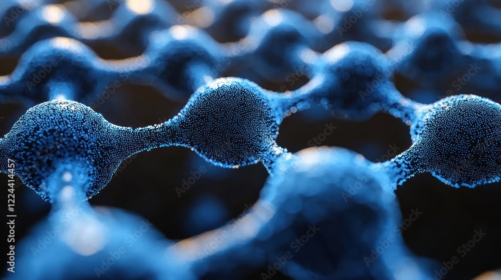 The watermark will not be included on Wall mural.: Luminous blue nodes network microscopic view intricate connectivity abstract science technology digi