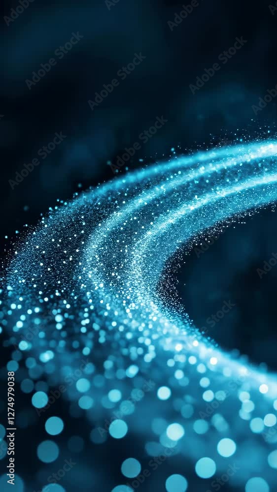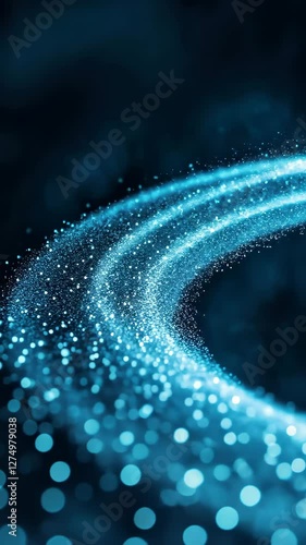 Wall mural luminous flux of blue particles in digital swirl creating a futuristic abstract background for techn