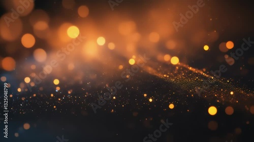 Wall mural luminous golden particles drifting across dark backdrop, generating dreamy bokeh effect with soft gl