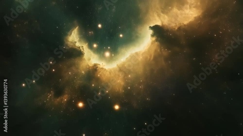 Wall mural luminous nebula clouds swirling through dark cosmic expanses, generating emerging stellar formations