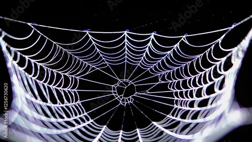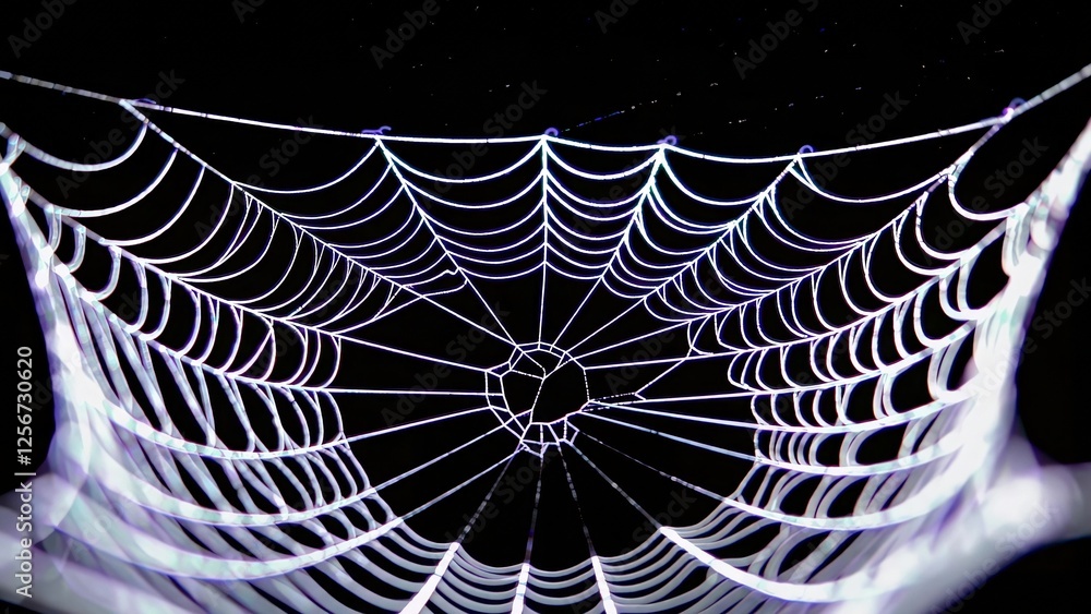 The watermark will not be included on Wall mural.: Luminous spider web creates a mesmerizing pattern against a dark backdrop, its delicate threads glow