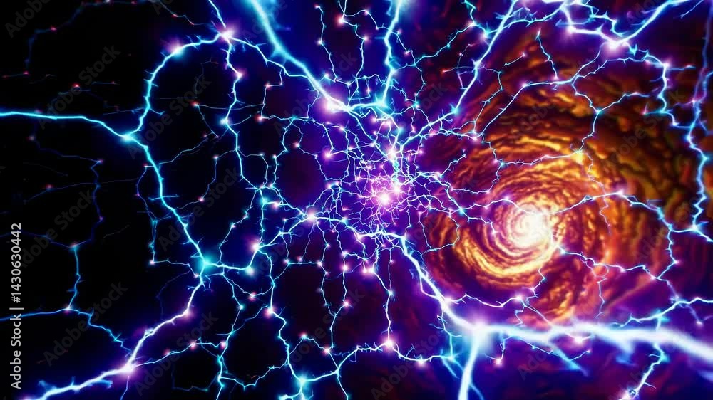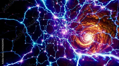 Wall mural : Luminous wormhole generating intense lightning and dynamic energy waves, revealing mesmerizing inter