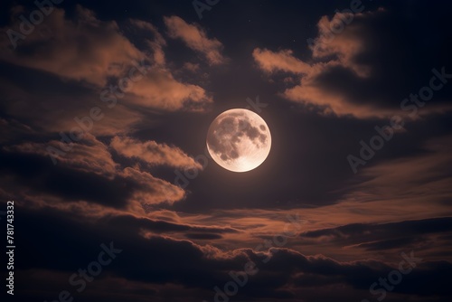 Wall mural lunar eclipse in sky with clouds, full view of lunar moon eclipse in cloudy sky