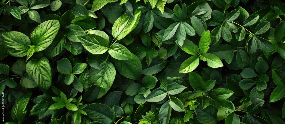 Wall mural : Lush green leaves create a natural background with a textured surface, ideal for a copy space image -