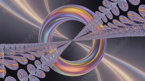 Lustrous chromatic donut intersected by pearlescent fractal dimensions in lighted spaceWall mural