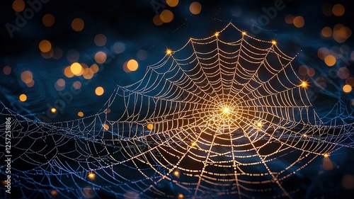 Wall mural luxe nature-inspired light patterns intricate spider web shimmering in soft light. - Wall murals Wall mural luxe nature-inspired light patterns intricate spider web shimmering in soft light. - Wall murals