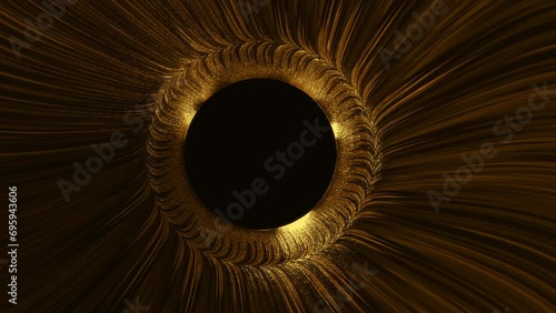 Wall mural luxury gold line wave flowing with light effect and black copy space circle in middle for text, logo