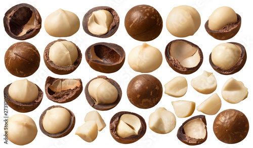 Wall mural : Macadamia nuts set isolated on white background - package design elements with clipping path