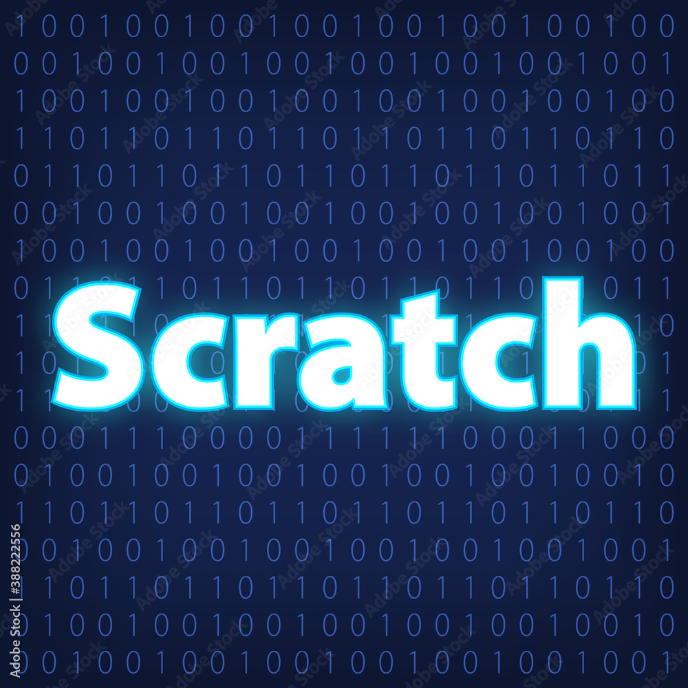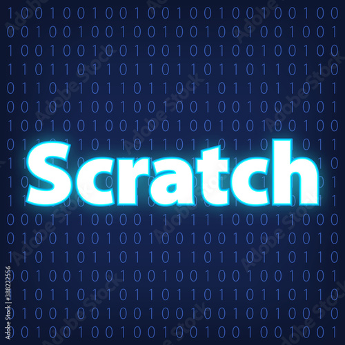 The watermark will not be included on Wall mural.: Machine code languages in neon style - programming languages concept in blue - language scratch on bin