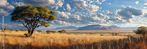 Wall mural : Machine generated photo of the open african landscape - safari concept with tree in the grasslands