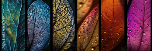 Wall mural : Macro close-ups of colorful leaves as header background