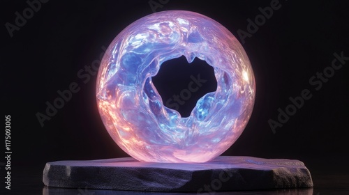 The watermark will not be included on Wall mural.: Macro glass 3d y2k render abstract bubble - transparent glassmorphism modern texture - holographic cur