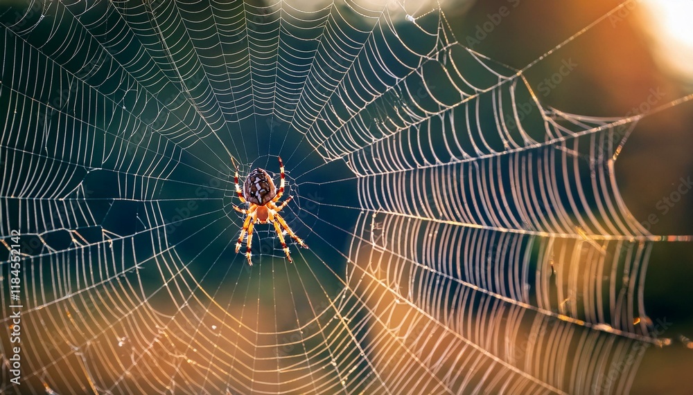The watermark will not be included on Wall mural.: Macro shot of a spider lurking on threads of its spiderweb