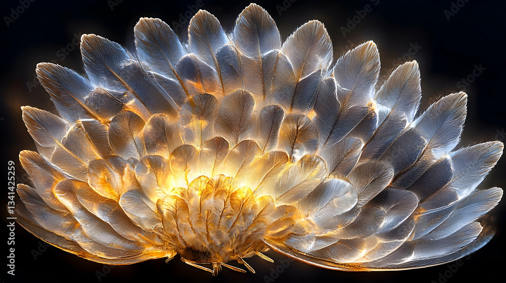 The watermark will not be included on Wall mural.: Macro shot of a tiny moth's wing scales showcasing fine details and iridescent patterns