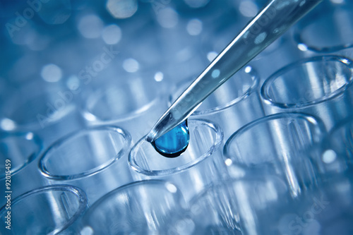 Wall mural macro shot of dozator tip and plastic plate for immunosorbent as - Wall murals Wall mural macro shot of dozator tip and plastic plate for immunosorbent as - Wall murals
