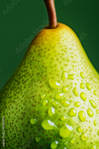 The watermark will not be included on Wall mural.: Macro shot of the texture of a pears skin highlighting the green surface with russet patches and smo
